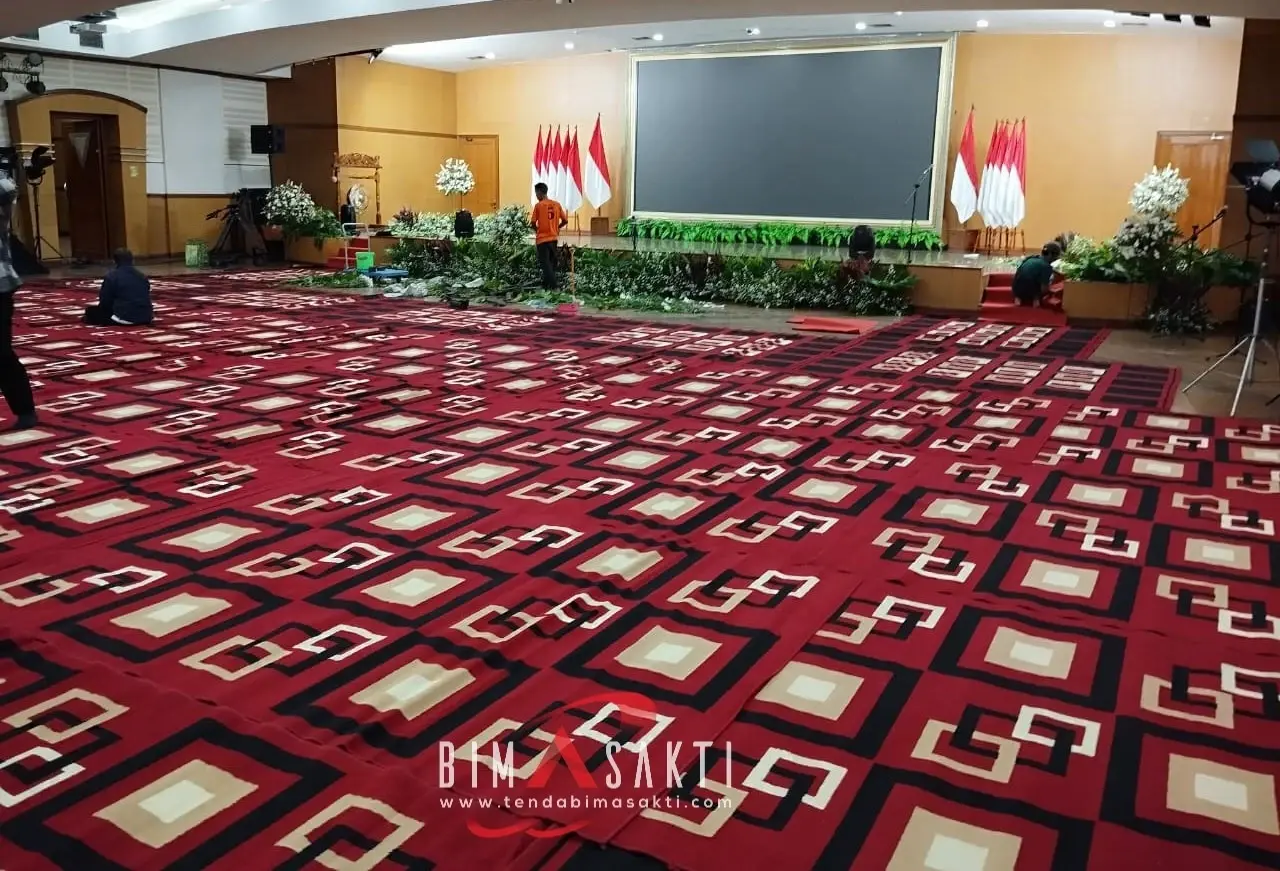 Untuk Anda yang menginginkan tampilan acara yang modern namun tetap elegan, karpet permadani minimalis dari Tenda Bimasakti adalah pilihan tepat.