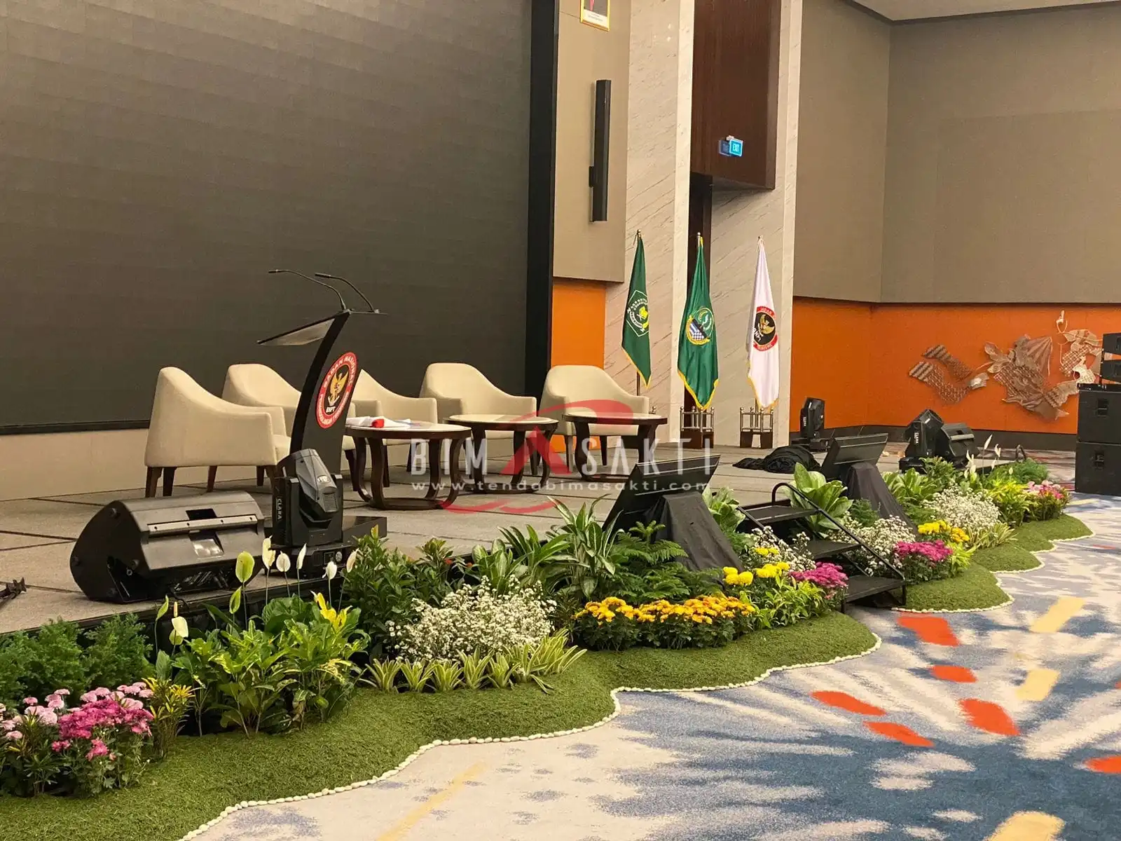 Dekorasi taman kecil mampu memberikan suasana natural yang menyegarkan. Banyak klien memilih layanan mini garden karena dapat meningkatkan estetika ruangan dan menambah kesan profesional pada event. Selain itu, mini garden juga sangat efektif sebagai elemen dekorasi pendukung untuk area foto, entrance gate, booth pameran, dan panggung utama.
